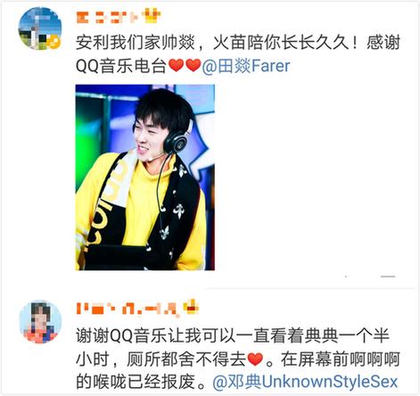 田燚、邓典粉丝在观看节目之后涌入《见面吧电台》官博留言