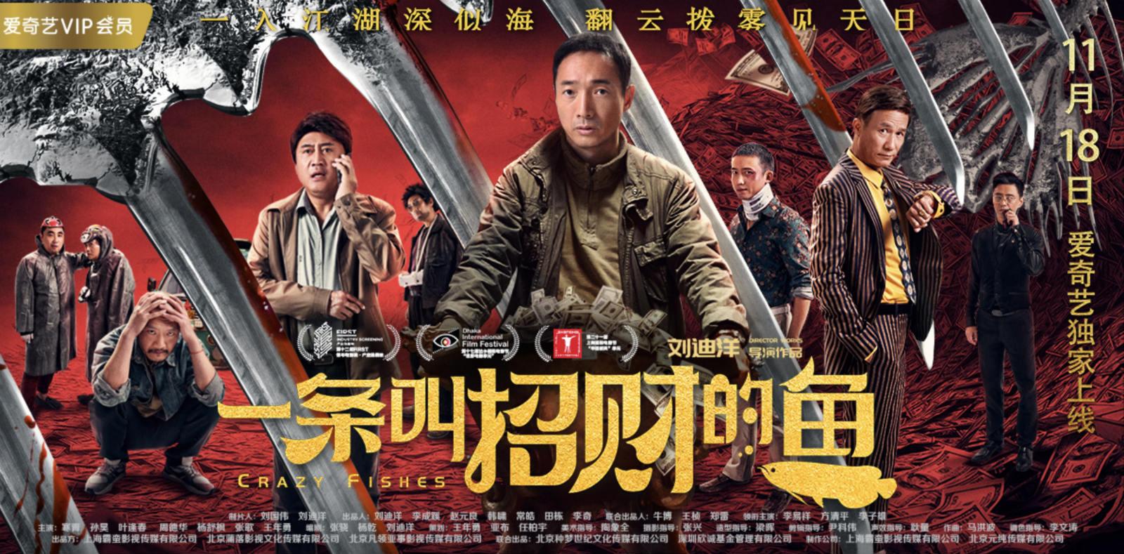 黑色幽默的多线叙事电影《一条叫招财的鱼》,由上海霸蛮影视传媒有限公司、北京蒲落影视文化传媒有限公司、北京凡领亚事影视传媒有限公司出品,北京种梦世纪文化传媒有限公司、深圳欣诚基金管理有限公司联合出品。它讲述了失业的火锅厂保卫科科长勇哥,为帮小舅子还债,无奈之下带帮手拿了厂长的金龙鱼准备变现,不料却因鱼肚里含商业黑幕的优盘卷入了纷争,各路人马为一条龙鱼竞相登场、出尽洋相的故事,该片即将于11月18日在爱奇艺VIP会员独家上线,希望这样一部质量上乘,精良用心的类型用片,在上线之后能够掀起“现象级”热度。
